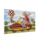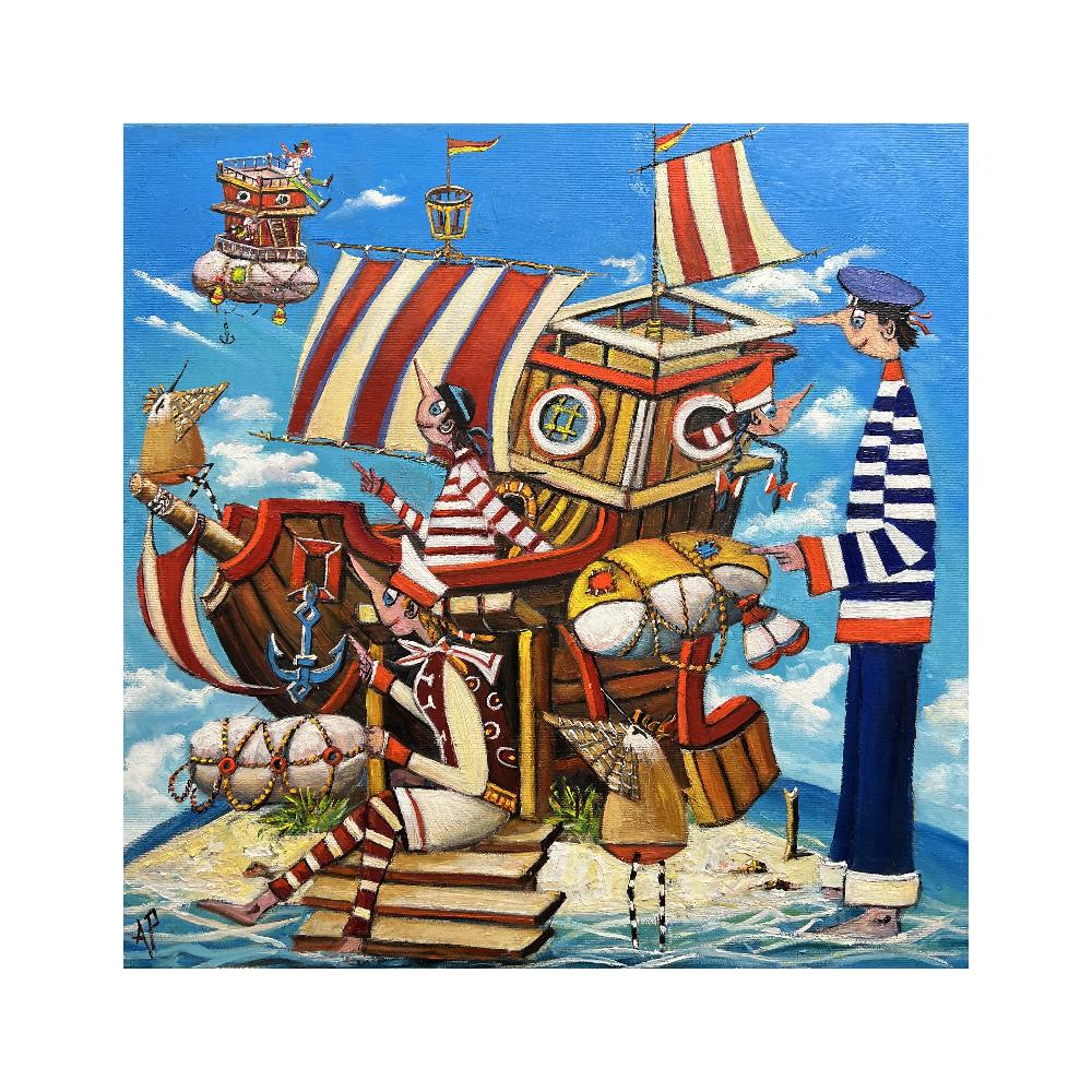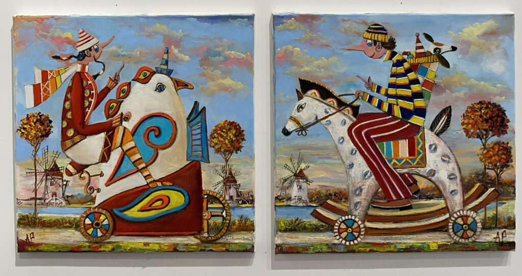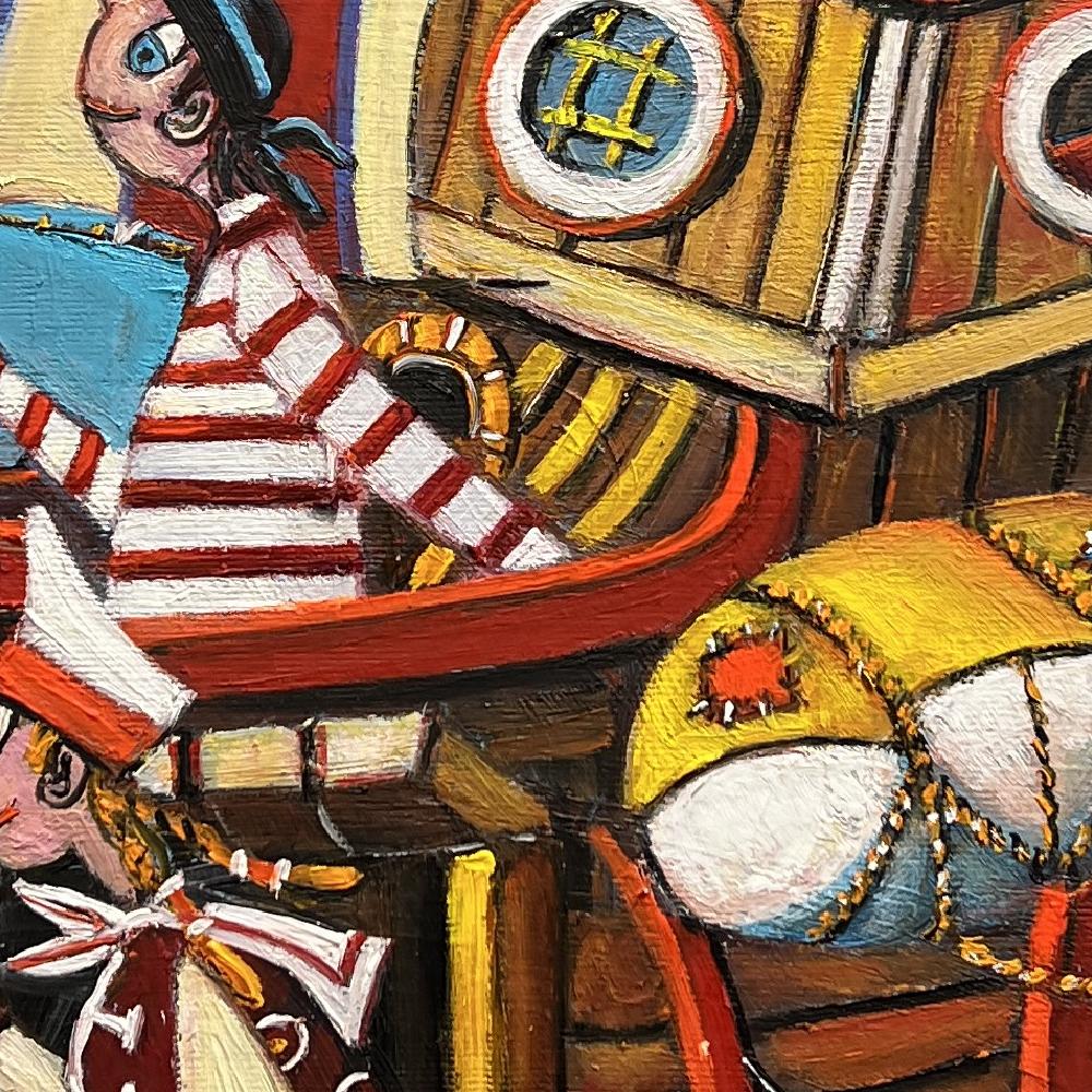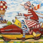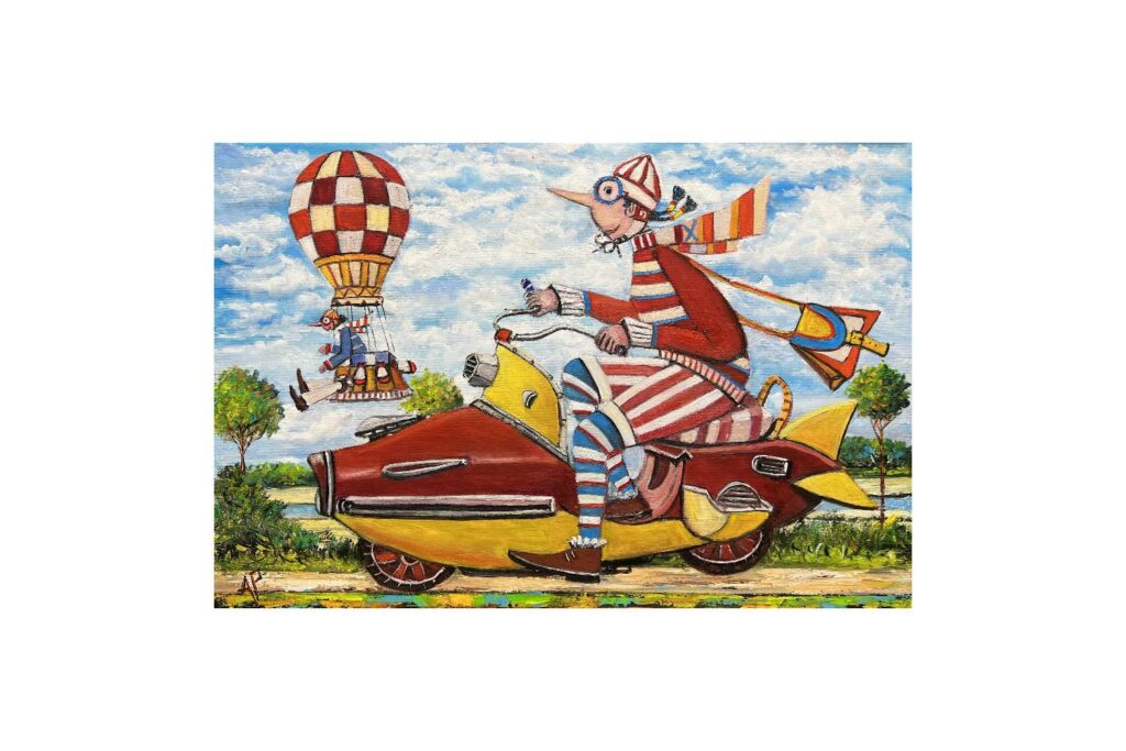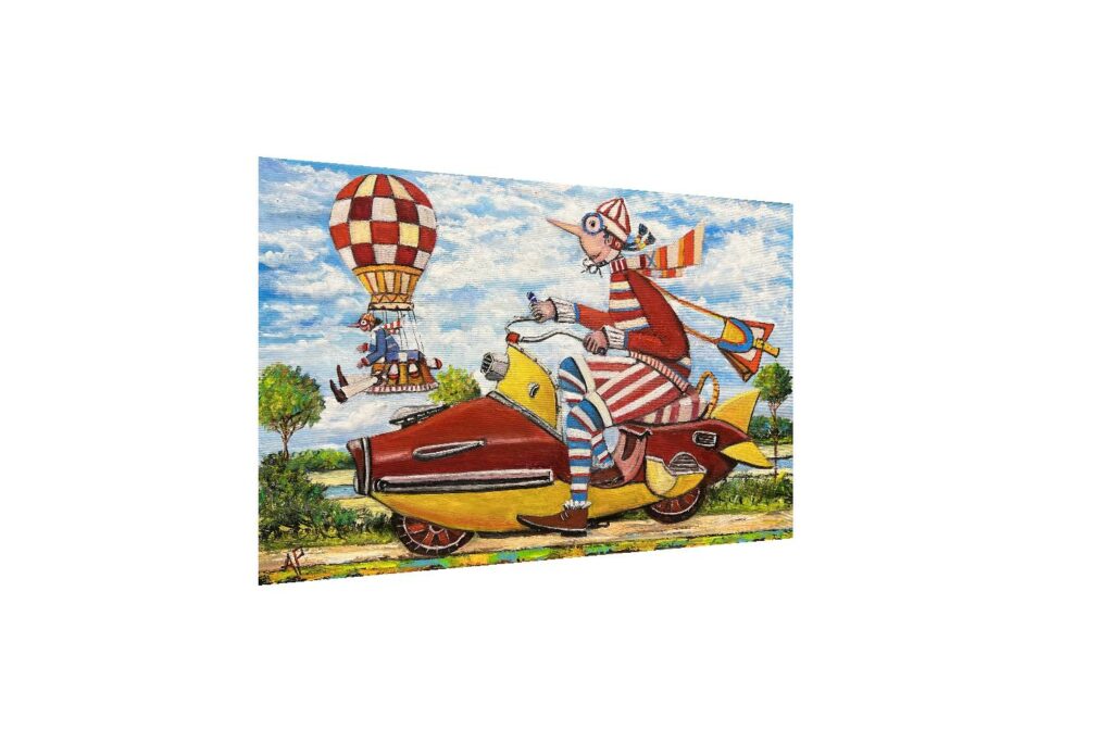 Hundreds of paintings and sculptures are in collections all over the world, including USA, New Zealand and even Afghanistan also in all European countries. Currently inspired by ceramic art in a funny way trying to tell about human passions. Behind the fairy-tale decorations are hidden the deepest human passions and desires. Canvas stretched on wooden frame. Colors of the painting may slightly differ from photos due to screen settings.