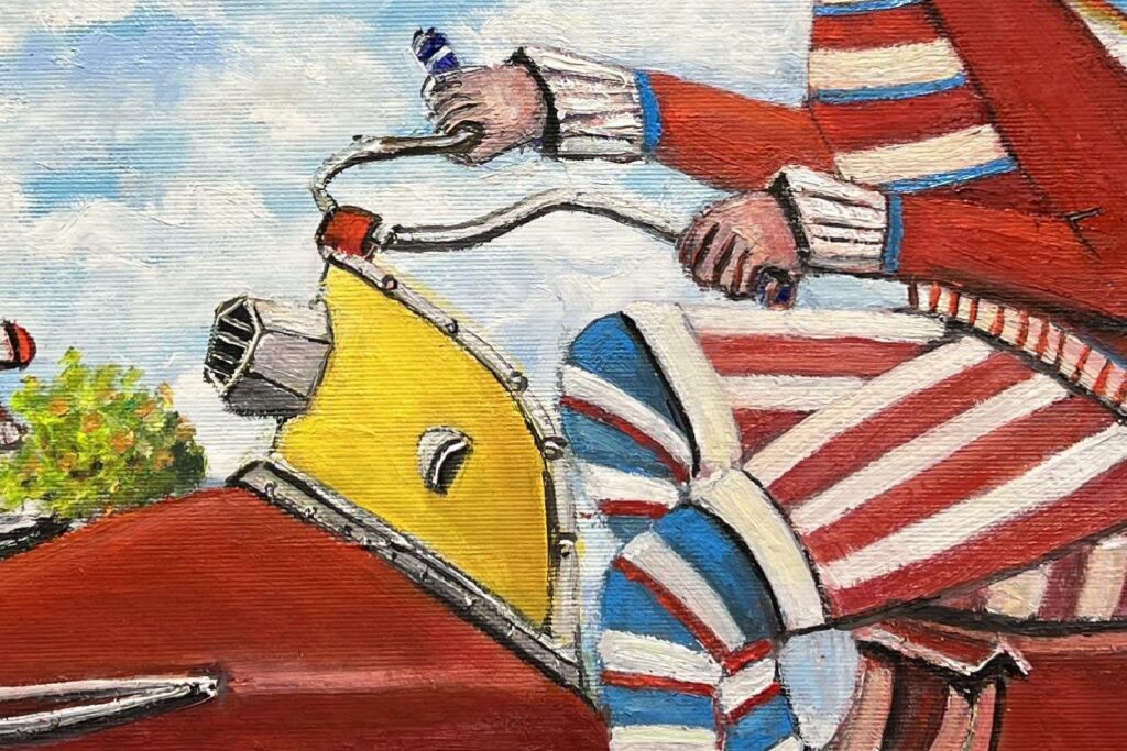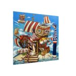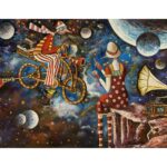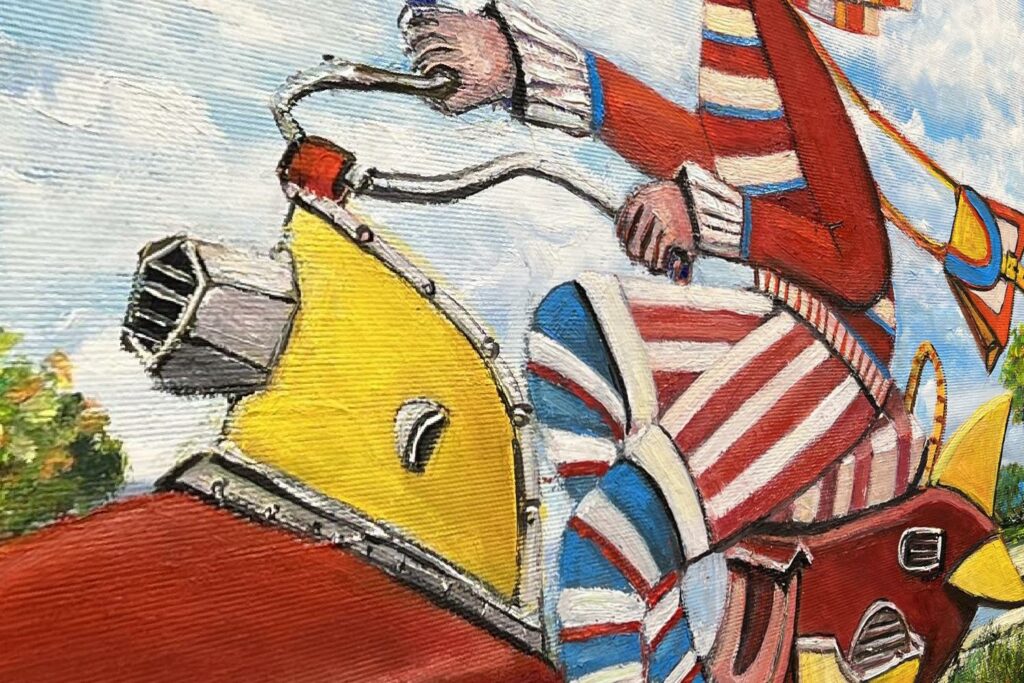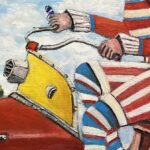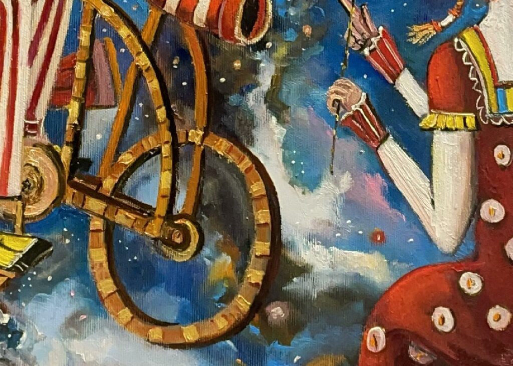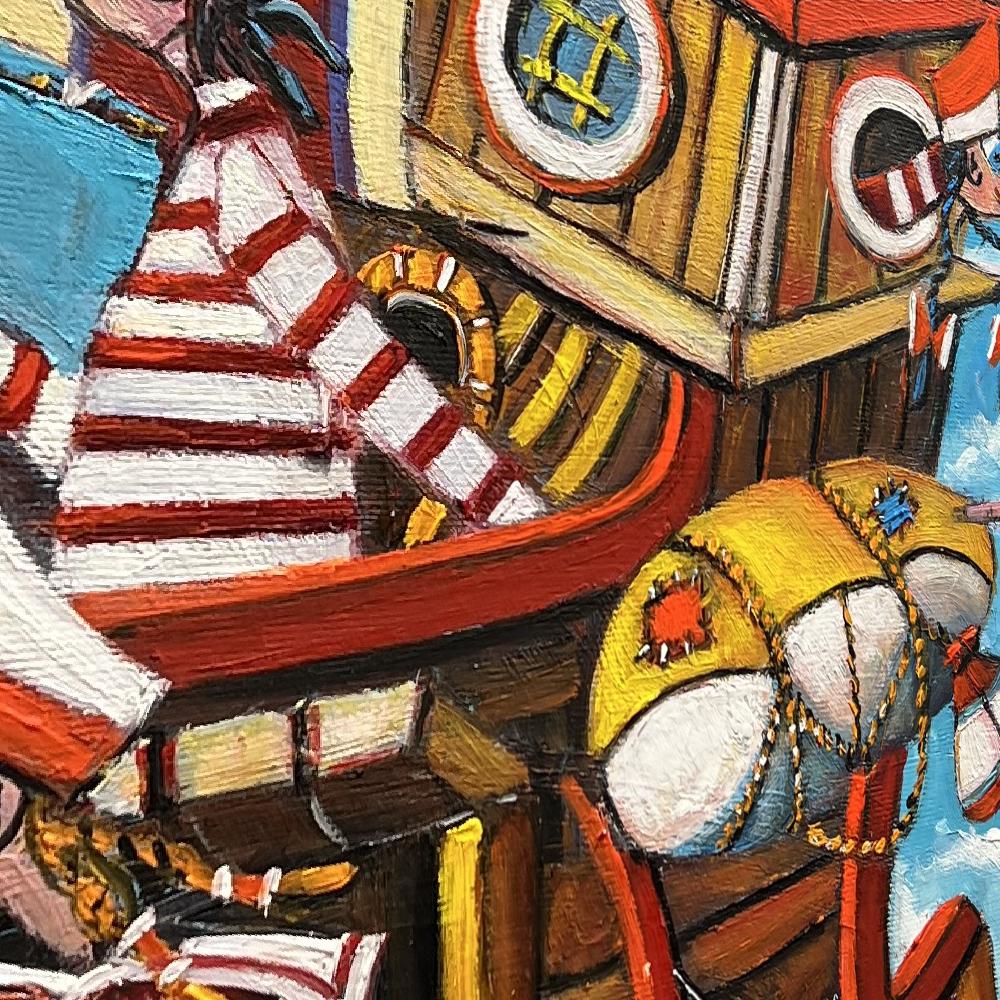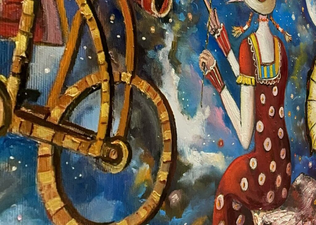 Hundreds of paintings and sculptures are in collections all over the world, including USA, New Zealand and even Afghanistan also in all European countries. Currently inspired by ceramic art in a funny way trying to tell about human passions. Behind the fairy-tale decorations are hidden the deepest human passions and desires. Canvas stretched on wooden frame. Colors of the painting may slightly differ from photos due to screen settings.