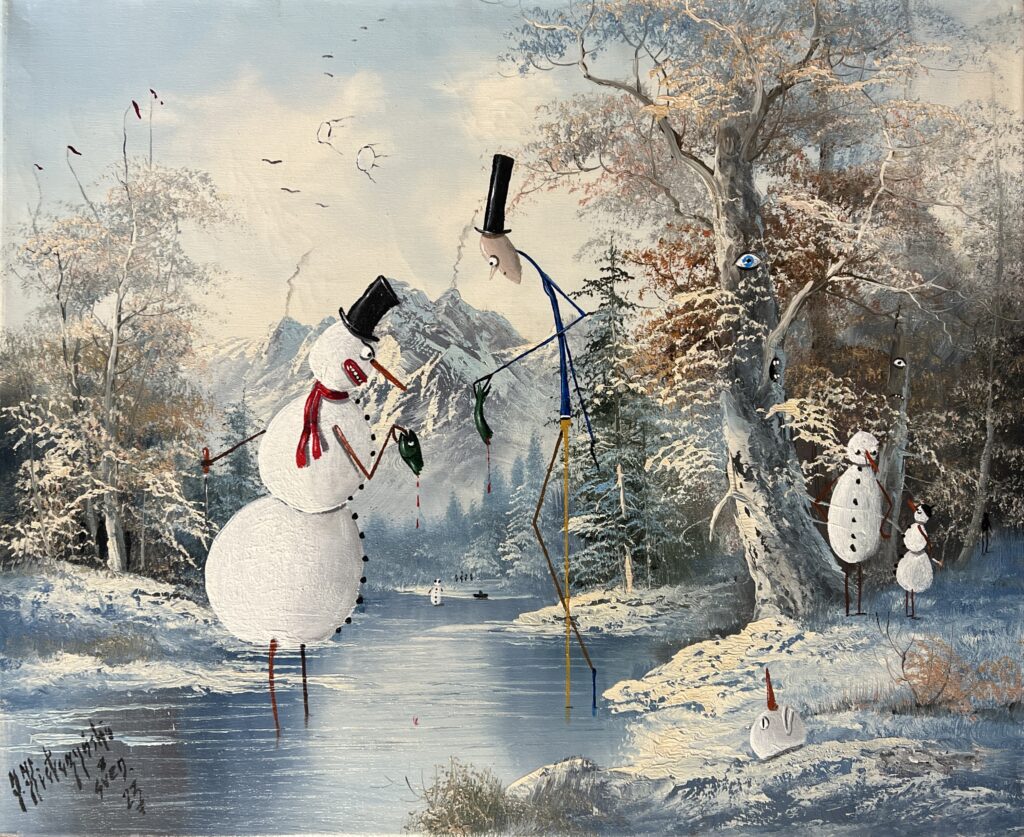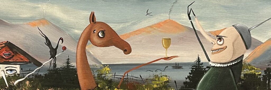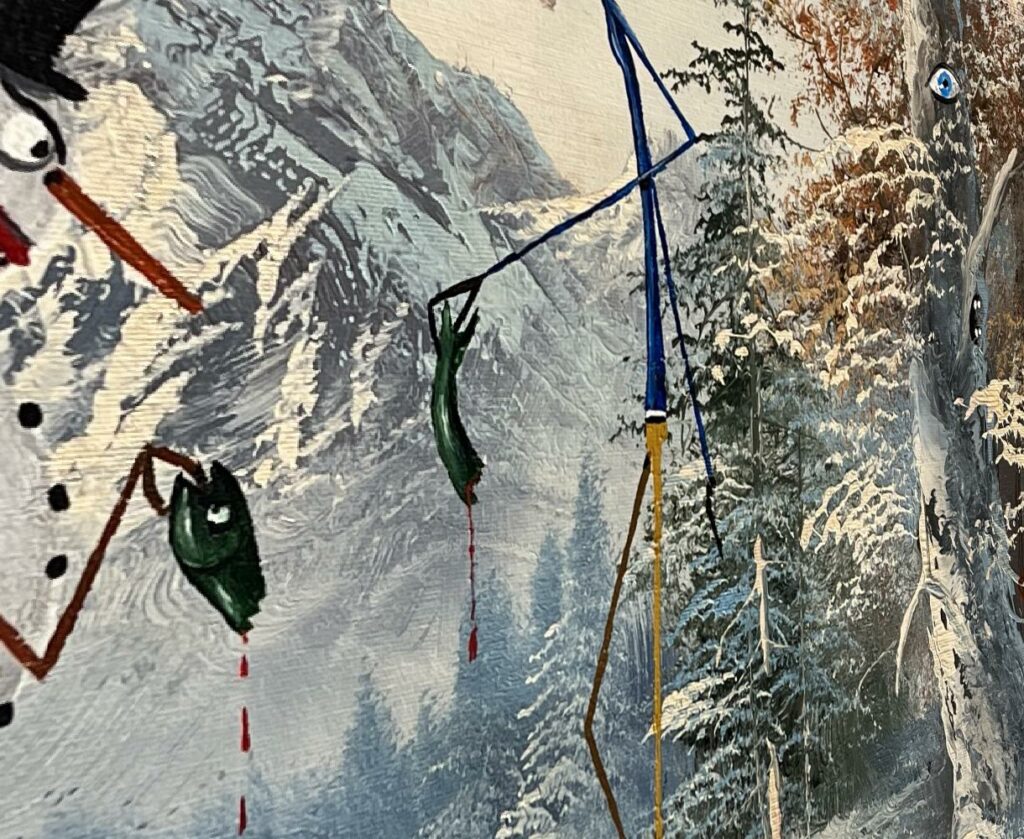 His art is inspired by Bosch and Holland art masters. He designed theater set for “Life is Beautiful”.