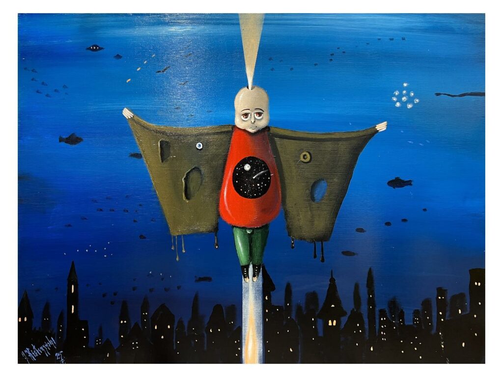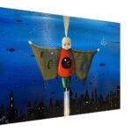 His art is inspired by Bosch and Holland art masters. He designed theater set for “Life is Beautiful”.
