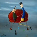 His art is inspired by Bosch and Holland art masters. He designed theater set for “Life is Beautiful”.