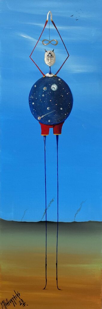 His art is inspired by Bosch and Holland art masters. He designed theater set for “Life is Beautiful”.