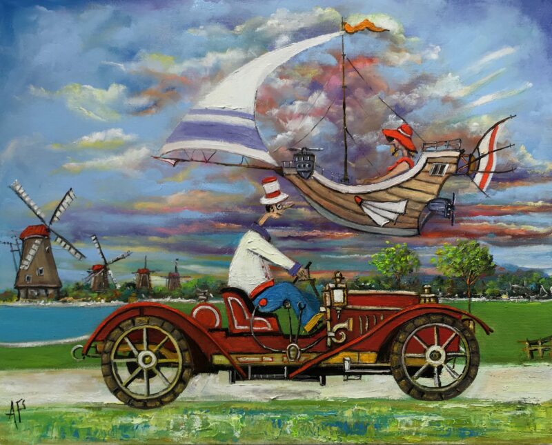 Hundreds of paintings and sculptures are in collections all over the world, including USA, New Zealand and even Afghanistan also in all European countries. Currently inspired by ceramic art in a funny way trying to tell about human passions. Behind the fairy-tale decorations are hidden the deepest human passions and desires. Canvas stretched on wooden frame. Colors of the painting may slightly differ from photos due to screen settings.