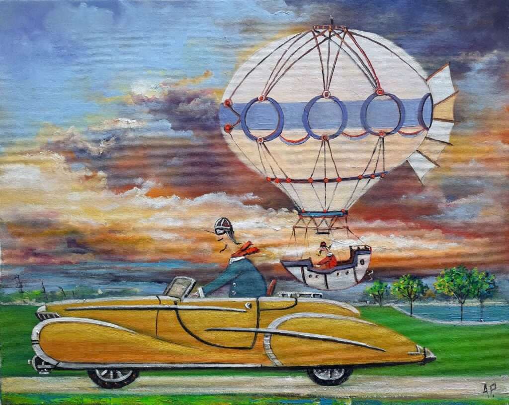 Hundreds of paintings and sculptures are in collections all over the world, including USA, New Zealand and even Afghanistan also in all European countries. Currently inspired by ceramic art in a funny way trying to tell about human passions. Behind the fairy-tale decorations are hidden the deepest human passions and desires. Canvas stretched on wooden frame. Colors of the painting may slightly differ from photos due to screen settings.