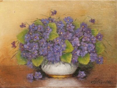 Józef Łącki maluje kwiaty, pejzaże, architekture Krakowa.