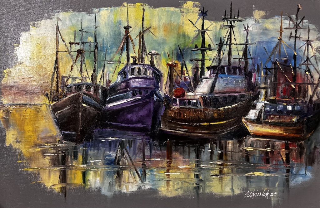 https://www.ahg36.com/modern-art-painting/boats-by-artist-andrzej-wycislok-82835/