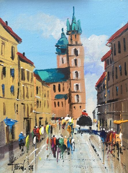Cloth Hall and St. Mary’s Basilica in Krakow - a painting by Alfred AnioΕ‚