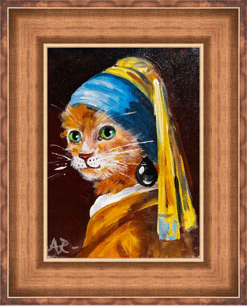 https://www.ahg36.com/modern-art-painting/cat-with-a-pearl-earring-by-artist-adam-rawicz-82825/