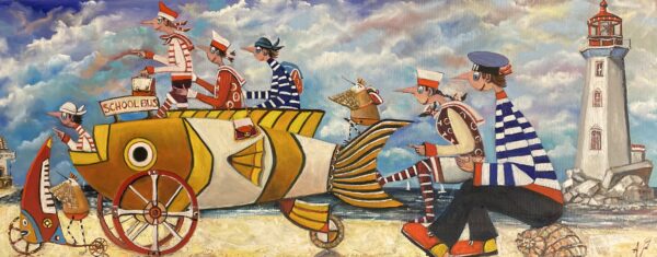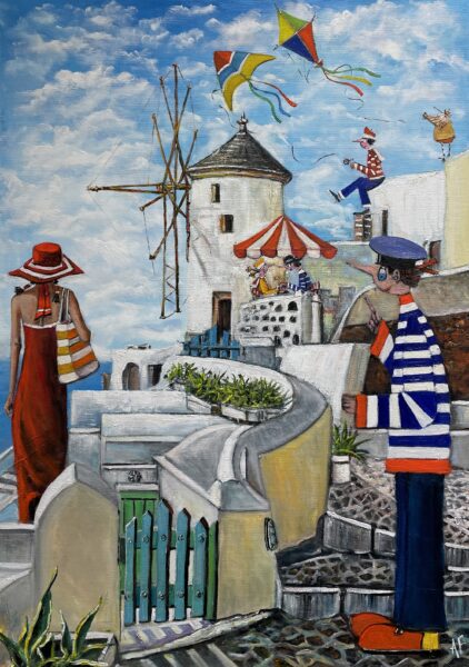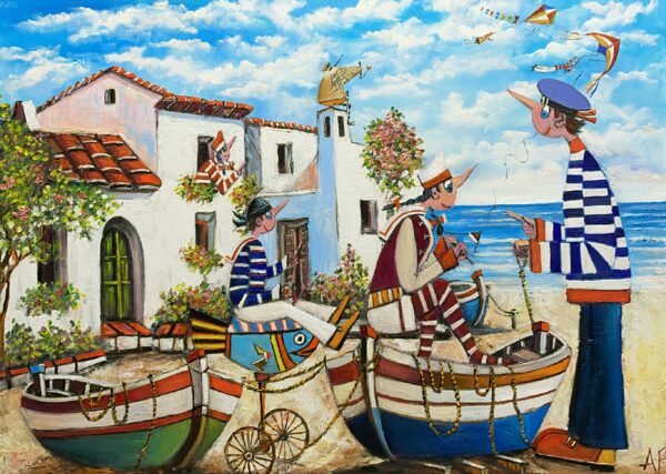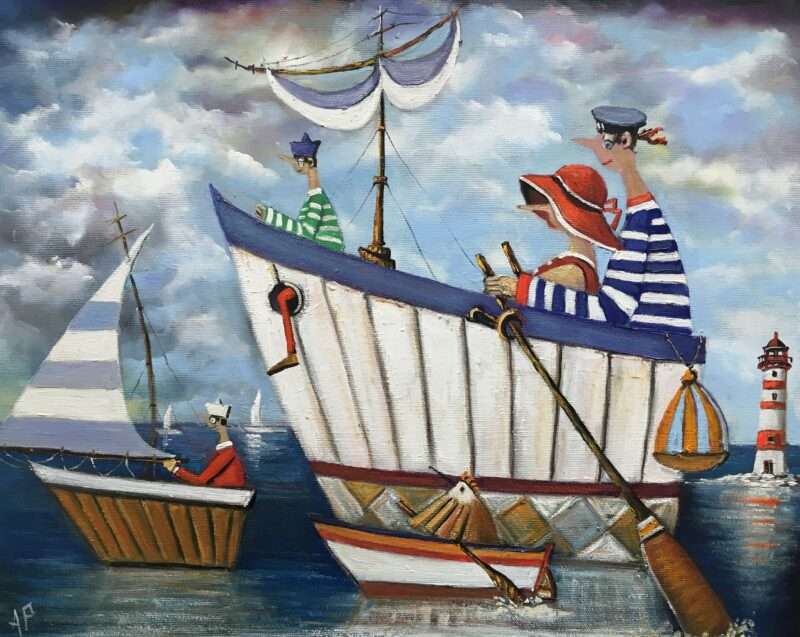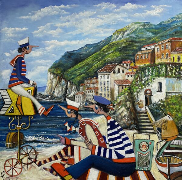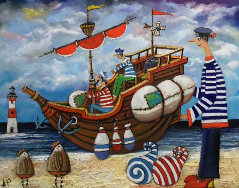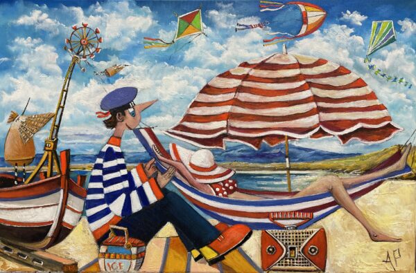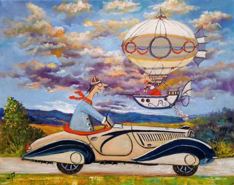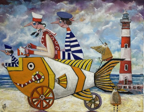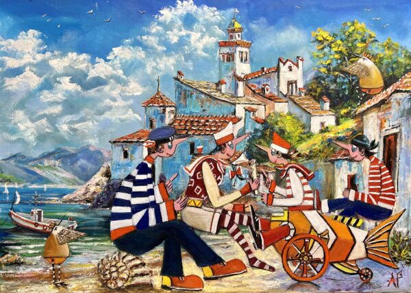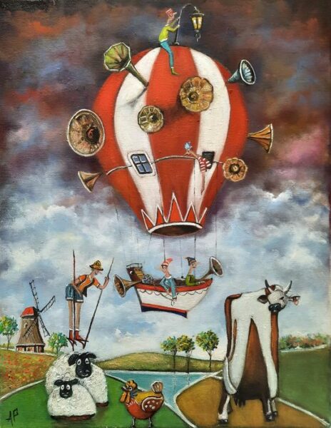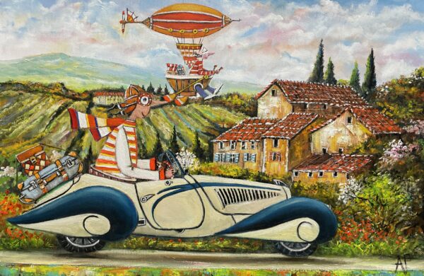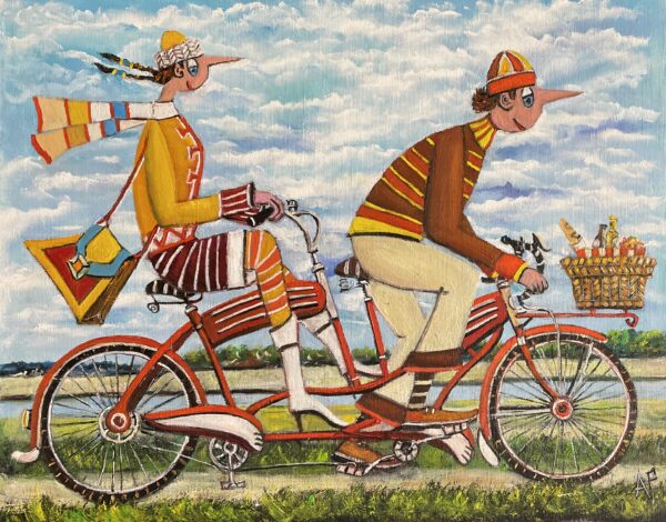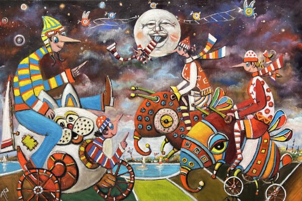 Hundreds of paintings and sculptures are in collections all over the world, including USA, New Zealand and even Afghanistan also in all European countries. Currently inspired by ceramic art in a funny way trying to tell about human passions. Behind the fairy-tale decorations are hidden the deepest human passions and desires. Canvas stretched on wooden frame. Colors of the painting may slightly differ from photos due to screen settings.