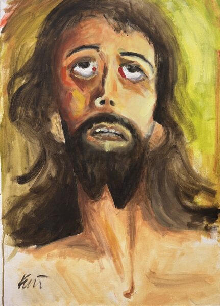 In this expressive oil sketch, a solitary figure emerges from swirls of warm ochre and deep emerald, its form both distinct and dissolving into the surrounding atmosphere. Broad, gestural strokes convey the tension of inward reflection, as the figureβs bowed posture hints at a moment of quiet introspection. Through its dynamic interplay of color and contour, the work captures the fleeting nature of thought ever shifting, yet anchored in the stillness of being.