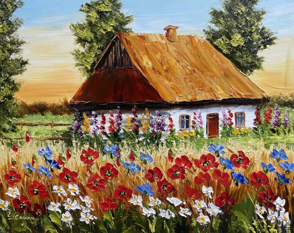 https://www.ahg36.com/modern-art-painting/country-cottage-by-artist-urszula-lemanska-30282/