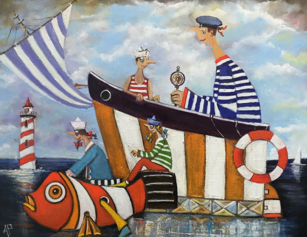 Hundreds of paintings and sculptures are in collections all over the world, including USA, New Zealand and even Afghanistan also in all European countries. Currently inspired by ceramic art in a funny way trying to tell about human passions. Behind the fairy-tale decorations are hidden the deepest human passions and desires. Canvas stretched on wooden frame. Colors of the painting may slightly differ from photos due to screen settings.