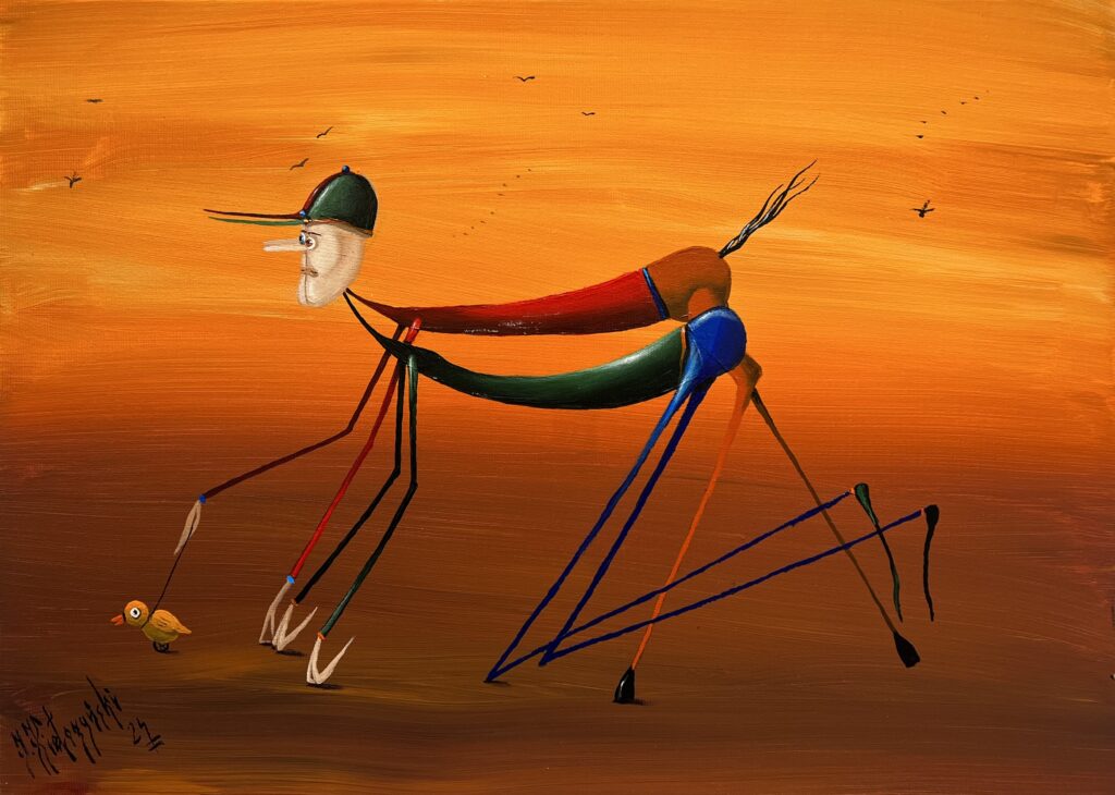 His art is inspired by Bosch and Holland art masters. He designed theater set for βLife is Beautifulβ.