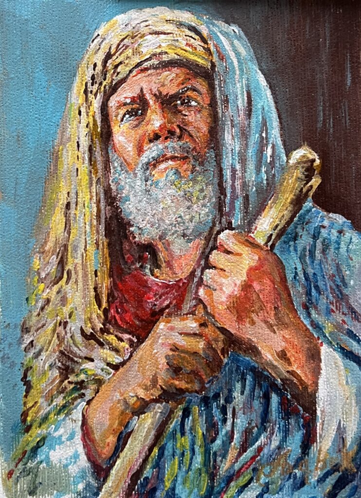 Here we encounter a vivid tableau of formidable character and poignant depth. This masterful work presents a figure shrouded in a tapestry of earth-toned textures, vividly evoking the commanding presence of historical dignity. The artist employs a luxuriant palette, where robust ochres and umbers confer an ancient gravitas, juxtaposed by azure whispers of serenity and mystique. The expressive use of light and shadow brings an almost tactile quality to the subjectβs features, suggesting both resilience and wisdom. The gaze, daring yet contemplative, pulls viewers into an intricate dance of introspection. This painting, with its echoes of both realism and expressionism, seamlessly marries the timeless narrative of human fortitude with the tender touch of the artistβs hand.