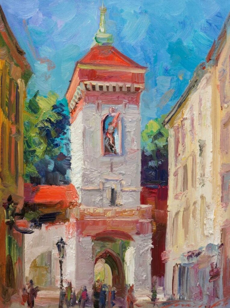 The artist studied painting in four cities: Athens, Budapest, Kiev and Krakow.