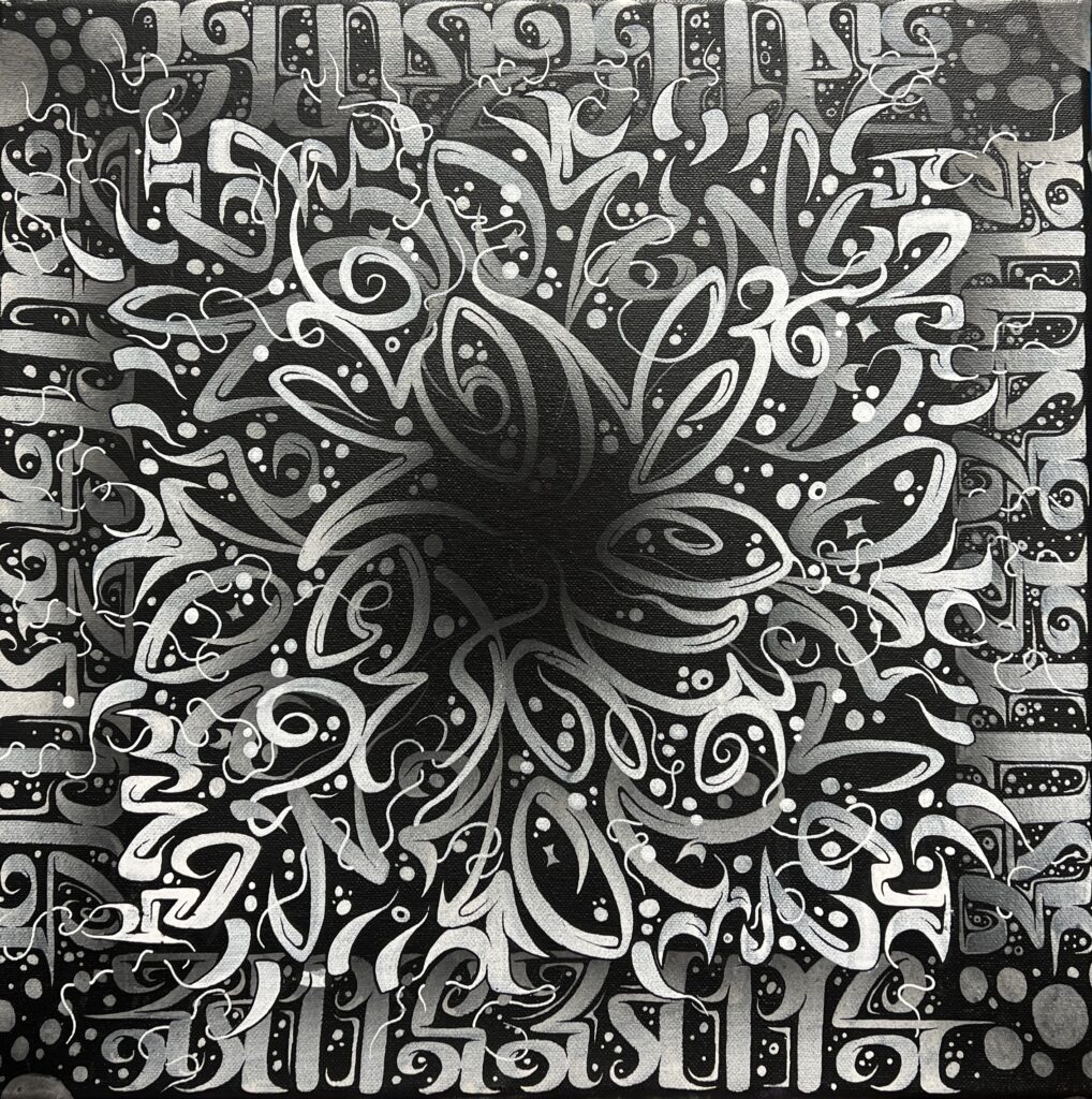 In this captivating composition, the artist masterfully navigates the interplay between shadow and light, crafting a mesmerizing dance of monochrome abstraction. The piece, reminiscent of a kaleidoscopic dream, is rooted in a dynamic contrast of silvery whites and deep blacks. Each swirling stroke seems to whisper secrets of the cosmos, inviting the viewer to lose themselves in its rhythmic patterns and fluid movements.
