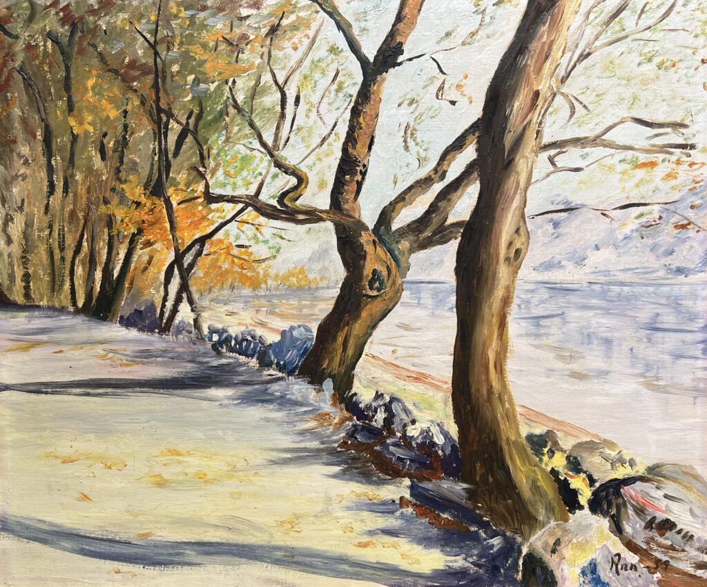 In this enchanting composition, we are invited to take a leisurely stroll along a serene riverside, where nature seems to have paused for a moment of introspection. The artist skillfully employs a vivid palette of autumnal hues—burnt oranges and rustic browns—to capture the fleeting beauty of leaves waiting to dance with the wind. The bold, sinuous strokes of the trees draw us into the scene, while the interplay of light and shadow adds a dynamic, almost theatrical contrast. Echoing the Impressionistic love for capturing the ephemeral, the artwork resonates with a quiet, poetic charm. Each brushstroke whispers stories of the landscape’s eternal yet transient allure, making it an exquisite addition to any collection.