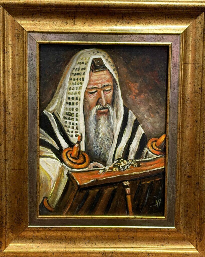 In this captivating painting, we are drawn into a world of quiet contemplation where an elder, draped in traditional attire, engages deeply with a scroll. The artist masterfully employs a rich, earthy palette, merging deep browns and warm golden hues to evoke a sense of wisdom and reverence. The luminous sheen of the scroll, contrasted against the textured fabric of the robe, suggests a play of light that underscores the profound nature of the scene. Echoes of the Old Masters resonate here, with a nod to realism that is both tender and intense. The background, subtly receding, provides intimacy, focusing our gaze. Itβs a tableau that invites us to pause and ponderβa captured moment in time that speaks volumes without uttering a word.
