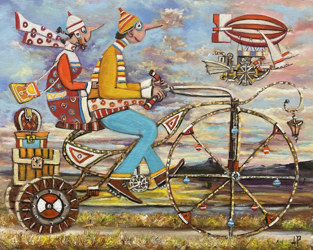 Hundreds of paintings and sculptures are in collections all over the world, including USA, New Zealand and even Afghanistan also in all European countries. Currently inspired by ceramic art in a funny way trying to tell about human passions. Behind the fairy-tale decorations are hidden the deepest human passions and desires. Canvas stretched on wooden frame. Colors of the painting may slightly differ from photos due to screen settings.