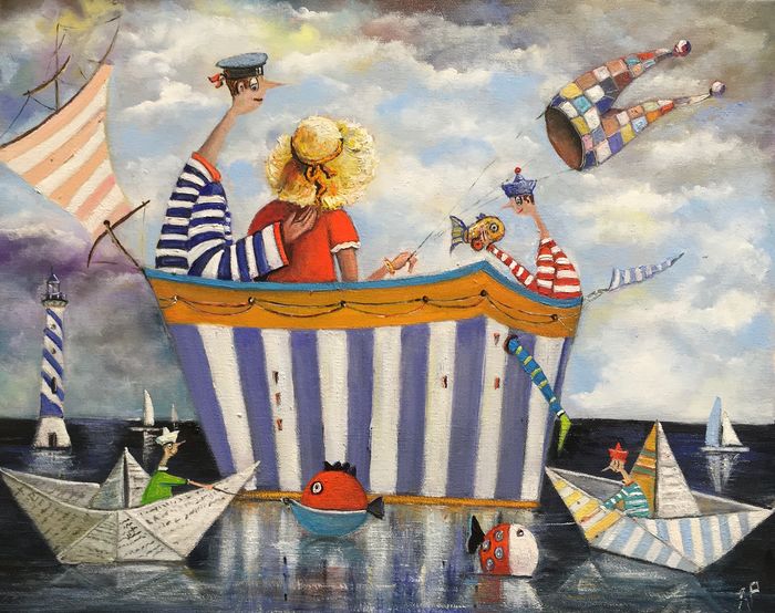 Hundreds of paintings and sculptures are in collections all over the world, including USA, New Zealand and even Afghanistan also in all European countries. Currently inspired by ceramic art in a funny way trying to tell about human passions. Behind the fairy-tale decorations are hidden the deepest human passions and desires. Canvas stretched on wooden frame. Colors of the painting may slightly differ from photos due to screen settings.