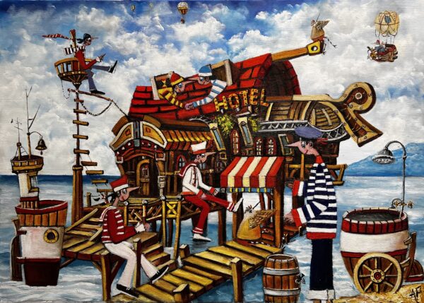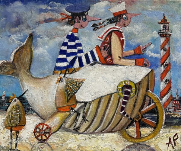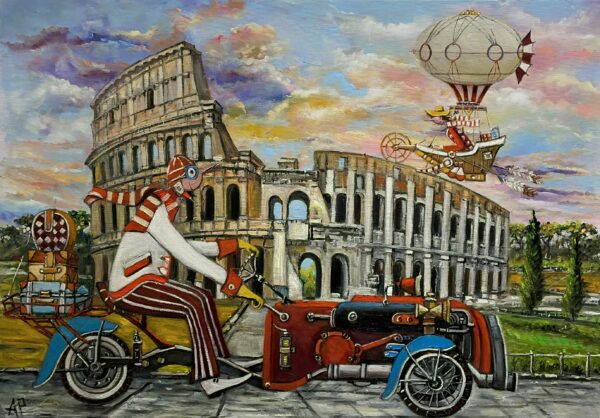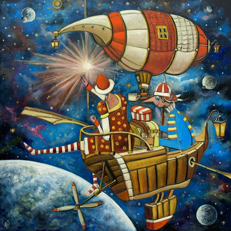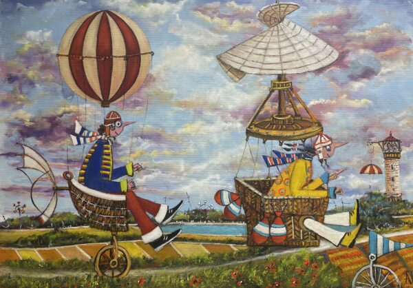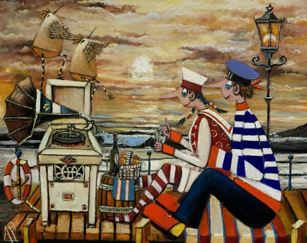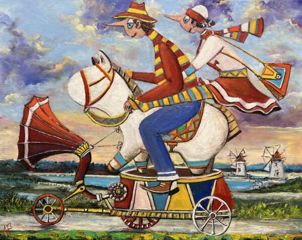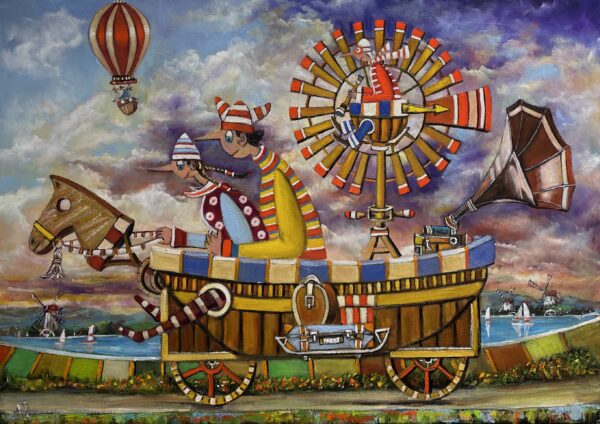 Hundreds of paintings and sculptures are in collections all over the world, including USA, New Zealand and even Afghanistan also in all European countries. Currently inspired by ceramic art in a funny way trying to tell about human passions. Behind the fairy-tale decorations are hidden the deepest human passions and desires. Canvas stretched on wooden frame. Colors of the painting may slightly differ from photos due to screen settings.