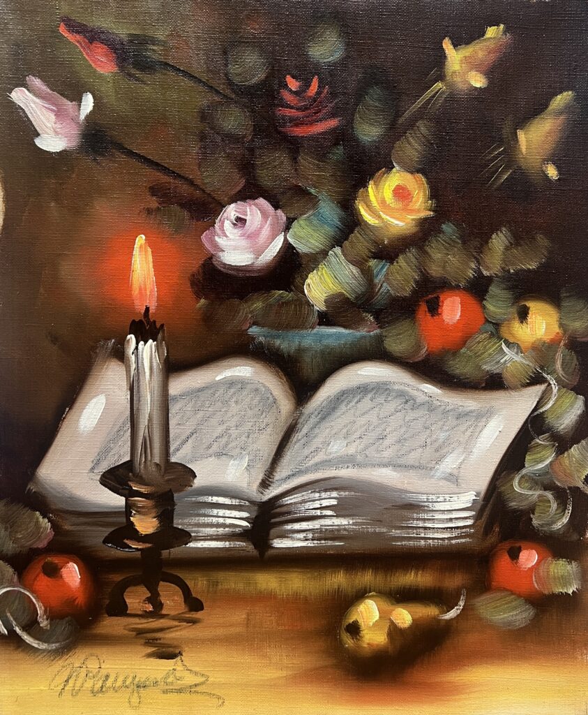 Light and shadow dance upon the pages of knowledge, a flickering flame caught between the eternal and the ephemeral. The book whispers secrets, yet they dissolve into the night. Flowers bloom, fruits ripen, time flows. What is read, what is seen, what is felt none remain, yet all persist.