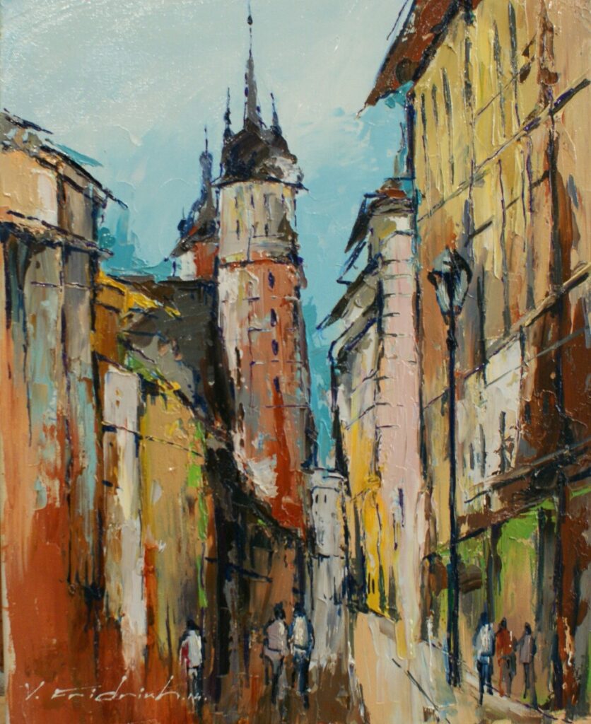 Viktor Fridrikh maluje różnorodną tematyke. Architekture, pejzaże i kwiaty.