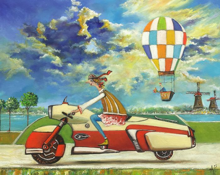 Hundreds of paintings and sculptures are in collections all over the world, including USA, New Zealand and even Afghanistan also in all European countries. Currently inspired by ceramic art in a funny way trying to tell about human passions. Behind the fairy-tale decorations are hidden the deepest human passions and desires. Canvas stretched on wooden frame. Colors of the painting may slightly differ from photos due to screen settings.