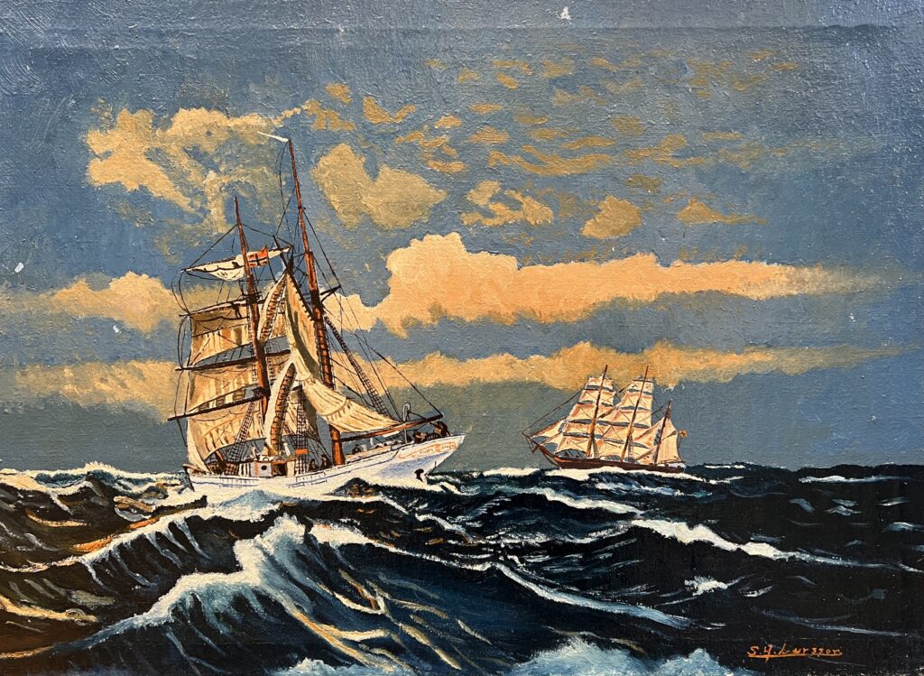 Feel the thrill of the open sea with this striking maritime masterpiece, where towering ships cut through rolling waves under a golden, windswept sky. The artistβs bold strokes and rich colors bring to life the age of exploration, adventure, and a time when getting lost meant more than a weak GPS signal.