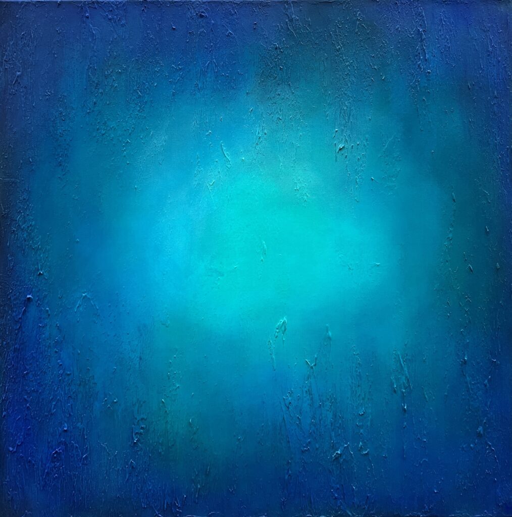 Echoes of abstract expressionism resonate throughout, yet there’s an undercurrent of minimalist restraint. This piece gently teases the senses, offering a meditative escape into a transcendent aquatic haven, proving that sometimes, simplicity holds the most profound allure.