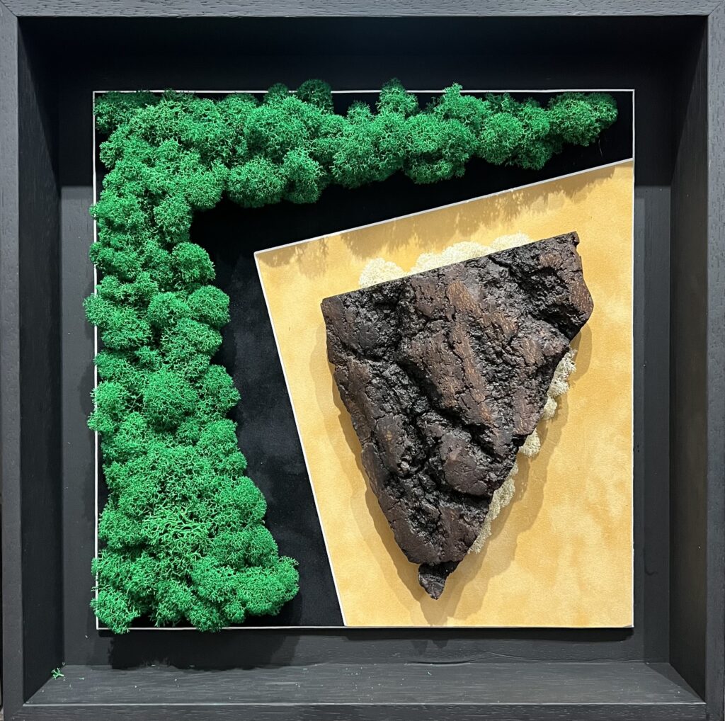 Of all the creations that we can experience, the most absolute and the most lasting is nature. In his works, the artist uses natural elements such as bark, wood, paper and moss
