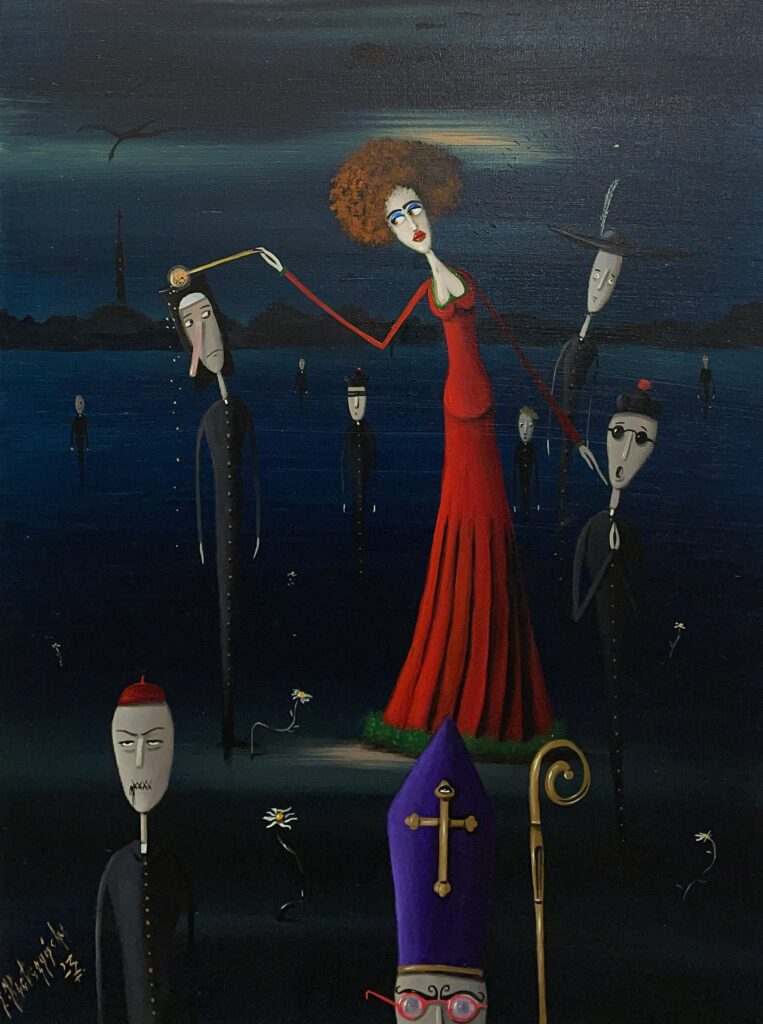 His art is inspired by Bosch and Holland art masters. He designed theater set for βLife is Beautifulβ.