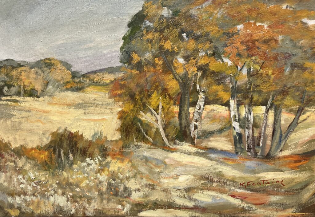 A shimmering symphony of autumnal hues unfurls across this captivating landscape, reminiscent of the Impressionist delight. The artist's brushstrokes, vibrant yet tender, dance with amber and gold, capturing the ephemeral beauty of a woodland basking in the golden hour. A stand of birches punctuates the scene, their trunks elegantly composed, whispering of the passing seasons. The horizon, softly blurred, beckons the viewer deeper into this serene sanctuary, where earth tones mingle with whispers of rust and olive. Here, light becomes colorβs partner, embracing the canvas with a gentle luminance that evokes both nostalgia and tranquility. This work, a testament to nature's quiet grandeur, invites a contemplative pause amidst life's ceaseless clamor.