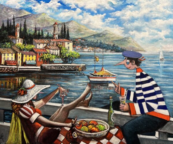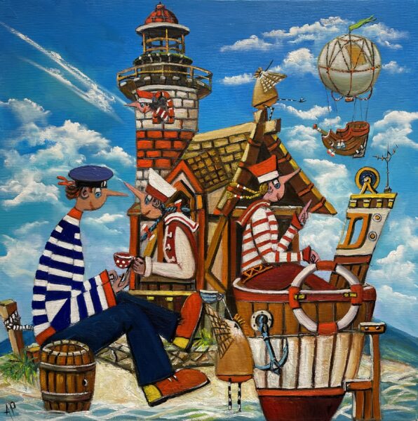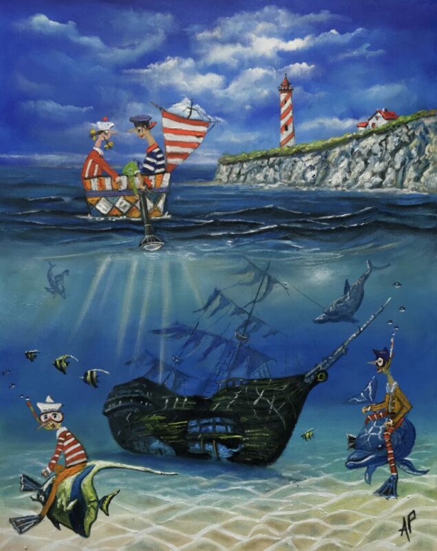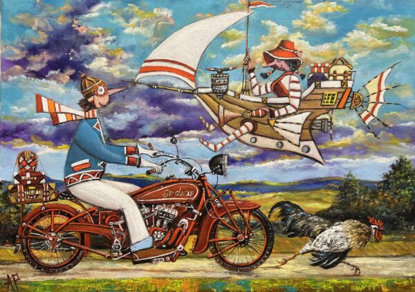 Hundreds of paintings and sculptures are in collections all over the world, including USA, New Zealand and even Afghanistan also in all European countries. Currently inspired by ceramic art in a funny way trying to tell about human passions. Behind the fairy-tale decorations are hidden the deepest human passions and desires. Canvas stretched on wooden frame. Colors of the painting may slightly differ from photos due to screen settings.