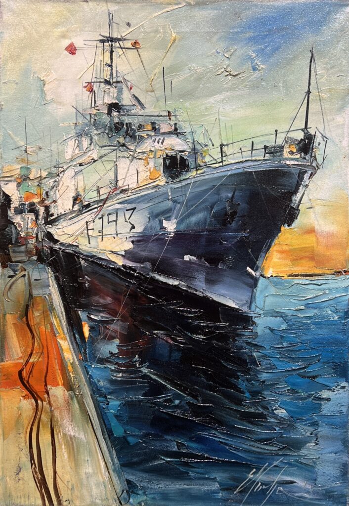 Hints of Impressionism linger in the fluidity of the composition, while the dramatic contrast between light and shadow imparts a contemporary vigor. This painting stirs a sense of adventure and nostalgia, beckoning the viewer into a world where the horizon holds endless possibilities. A true testament to the artist's dynamic expression and mastery of the nautical realm.