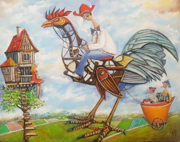 Hundreds of paintings and sculptures are in collections all over the world, including USA, New Zealand and even Afghanistan also in all European countries. Currently inspired by ceramic art in a funny way trying to tell about human passions. Behind the fairy-tale decorations are hidden the deepest human passions and desires. Canvas stretched on wooden frame. Colors of the painting may slightly differ from photos due to screen settings.
