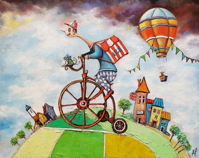 Hundreds of paintings and sculptures are in collections all over the world, including USA, New Zealand and even Afghanistan also in all European countries. Currently inspired by ceramic art in a funny way trying to tell about human passions. Behind the fairy-tale decorations are hidden the deepest human passions and desires. Canvas stretched on wooden frame. Colors of the painting may slightly differ from photos due to screen settings.