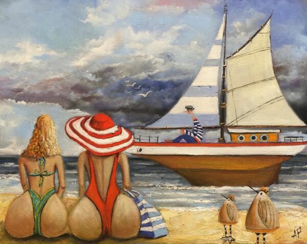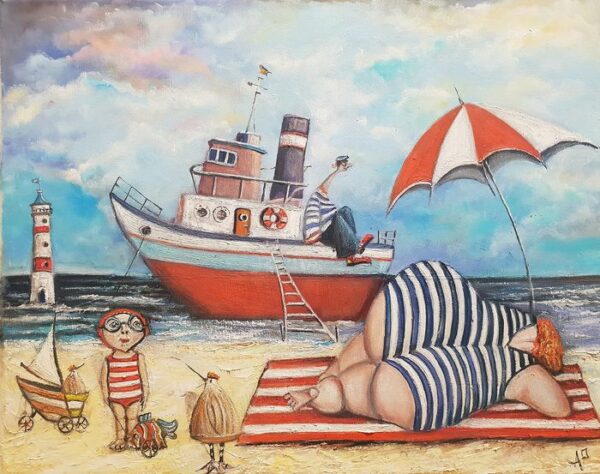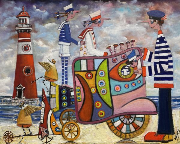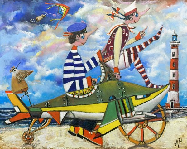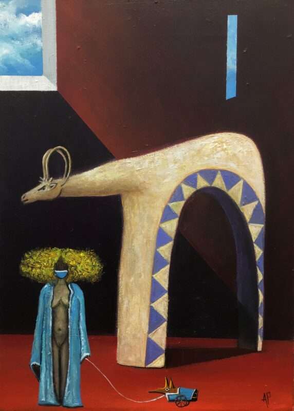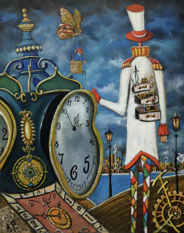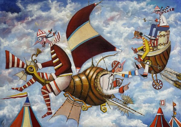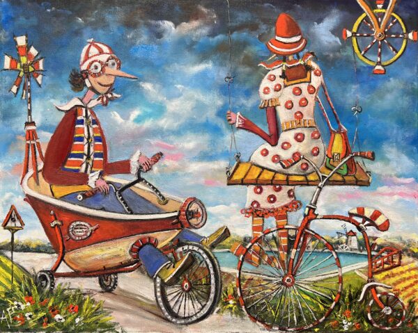 Hundreds of paintings and sculptures are in collections all over the world, including USA, New Zealand and even Afghanistan also in all European countries. Currently inspired by ceramic art in a funny way trying to tell about human passions. Behind the fairy-tale decorations are hidden the deepest human passions and desires. Canvas stretched on wooden frame. Colors of the painting may slightly differ from photos due to screen settings.
