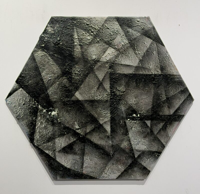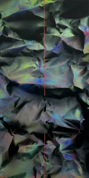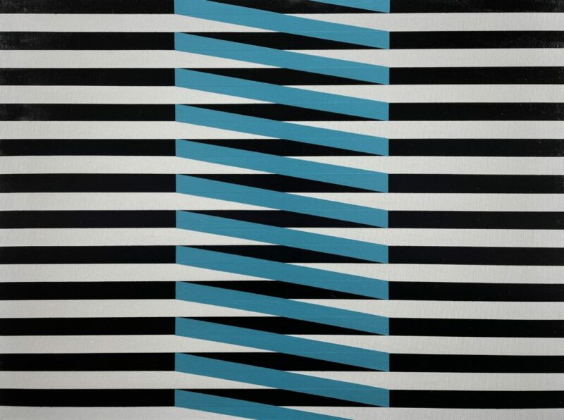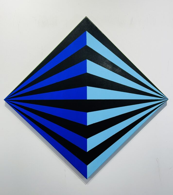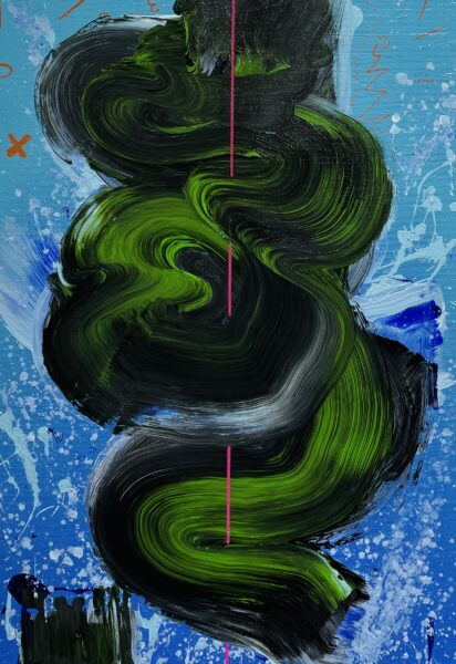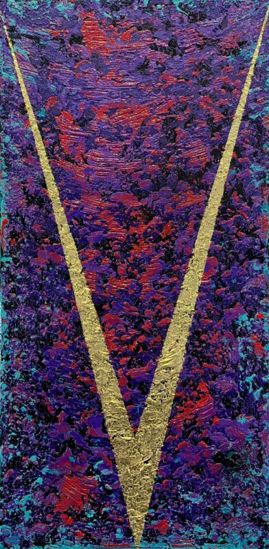 Canvas stretched on wooden frame. Artwork is signed on the back.