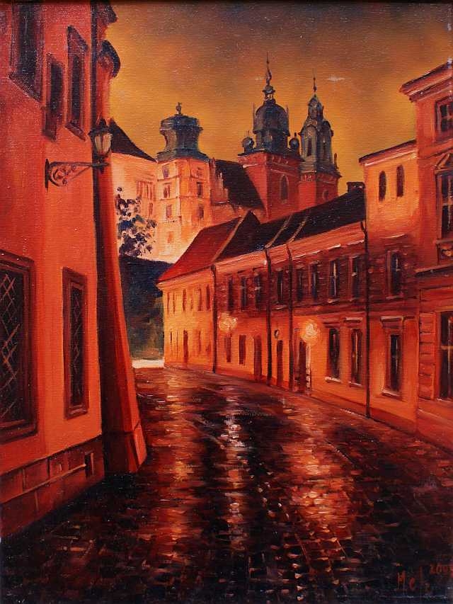 Leszek Metz maluje architekture Krakowa, sceny rodzajowe, postacie kobiet.
