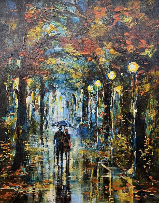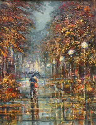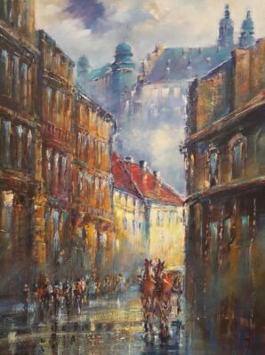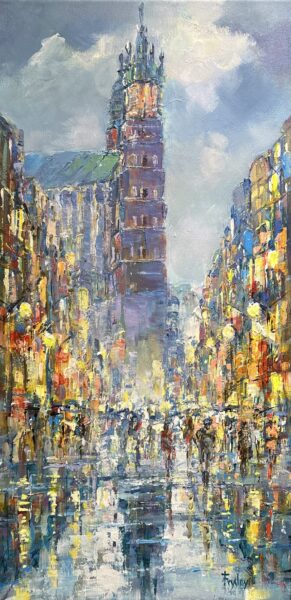 Danuta Frydrych, a talented painting artist, creates her paintings with oil paint on canvas. Her works emanate a unique atmosphere after the rain, in which strong reflections and the play of lights give them an extraordinary atmosphere. In her paintings, you can see how a raindrop flows down the glass, reflecting and blurring the light in a mysterious way. This magical moment is captured on canvas with incredible precision. Through the intricately applied layers of paint, we feel the delicate falling drops and their effect on the surrounding world. The oil paints that Danuta uses create dense and deep colors that bring the paintings to life. Her technique is precise and virtuosic, and every brushstroke matters. As a result, each piece reflects her ability to convey delicacy and strength at the same time. The play of lights and shadows is a key element in Danuta's work. The light falls on the wet sidewalks, reflecting off the puddles, creating a colorful dance. Reflections on the wet surface of the street or shiny leaves give the paintings a three-dimensional character. The artist's eyes are able to see beauty in ordinary, everyday situations and express it on canvas in a unique way. Each painting by Danuta Frydrych is a story that delights and inspires. Her works take us to a magical world after the rain, where reflections and the play of lights enliven landscapes and urban landscapes. Her talent, passion and ability to create atmospheric scenes make Danuta's paintings an unforgettable experience for the eyes and soul.