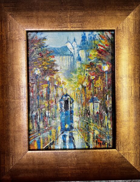 Danuta Frydrych, a talented painting artist, creates her paintings with oil paint on canvas. Her works emanate a unique atmosphere after the rain, in which strong reflections and the play of lights give them an extraordinary atmosphere. In her paintings, you can see how a raindrop flows down the glass, reflecting and blurring the light in a mysterious way. This magical moment is captured on canvas with incredible precision. Through the intricately applied layers of paint, we feel the delicate falling drops and their effect on the surrounding world. The oil paints that Danuta uses create dense and deep colors that bring the paintings to life. Her technique is precise and virtuosic, and every brushstroke matters. As a result, each piece reflects her ability to convey delicacy and strength at the same time. The play of lights and shadows is a key element in Danuta's work. The light falls on the wet sidewalks, reflecting off the puddles, creating a colorful dance. Reflections on the wet surface of the street or shiny leaves give the paintings a three-dimensional character. The artist's eyes are able to see beauty in ordinary, everyday situations and express it on canvas in a unique way. Each painting by Danuta Frydrych is a story that delights and inspires. Her works take us to a magical world after the rain, where reflections and the play of lights enliven landscapes and urban landscapes. Her talent, passion and ability to create atmospheric scenes make Danuta's paintings an unforgettable experience for the eyes and soul.