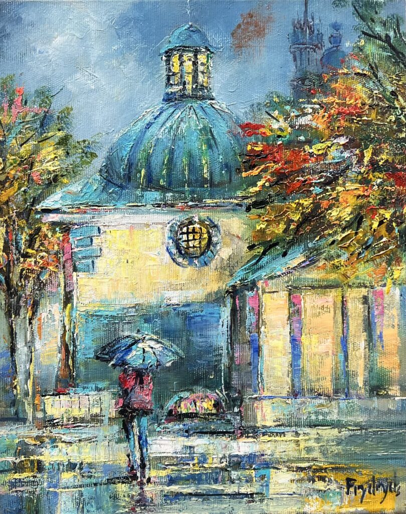Danuta Frydrych, a talented painting artist, creates her paintings with oil paint on canvas. Her works emanate a unique atmosphere after the rain, in which strong reflections and the play of lights give them an extraordinary atmosphere. In her paintings, you can see how a raindrop flows down the glass, reflecting and blurring the light in a mysterious way. This magical moment is captured on canvas with incredible precision. Through the intricately applied layers of paint, we feel the delicate falling drops and their effect on the surrounding world. The oil paints that Danuta uses create dense and deep colors that bring the paintings to life. Her technique is precise and virtuosic, and every brushstroke matters. As a result, each piece reflects her ability to convey delicacy and strength at the same time. The play of lights and shadows is a key element in Danuta's work. The light falls on the wet sidewalks, reflecting off the puddles, creating a colorful dance. Reflections on the wet surface of the street or shiny leaves give the paintings a three-dimensional character. The artist's eyes are able to see beauty in ordinary, everyday situations and express it on canvas in a unique way. Each painting by Danuta Frydrych is a story that delights and inspires. Her works take us to a magical world after the rain, where reflections and the play of lights enliven landscapes and urban landscapes. Her talent, passion and ability to create atmospheric scenes make Danuta's paintings an unforgettable experience for the eyes and soul.