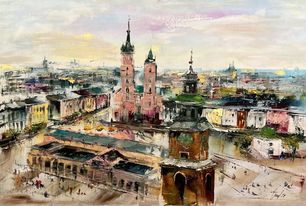 Anioł’s attention to detail and skillful brushwork bring out the textures and intricate details of the architecture, while the overall composition evokes a deep appreciation for Krakow's cultural and historical significance.