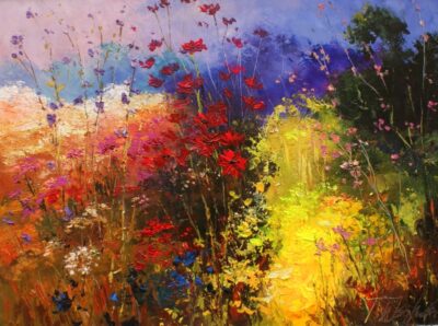 Tadeusz Wojtkowski - tematyką jego prac są kwiaty i pejzaże.