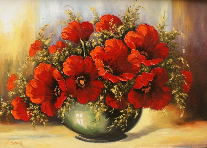 Jan Czarnota maluje kwiaty i pejzaΕΌe.