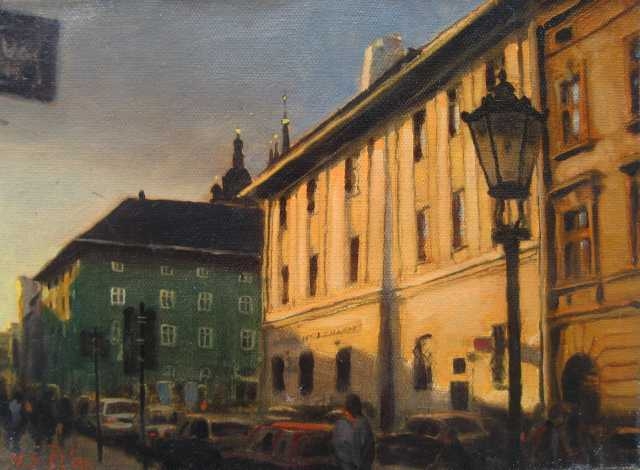 Michał Sławomir Dobrowolski maluje martwą naturę, portrety, kwiaty, architekturę Krakowa.