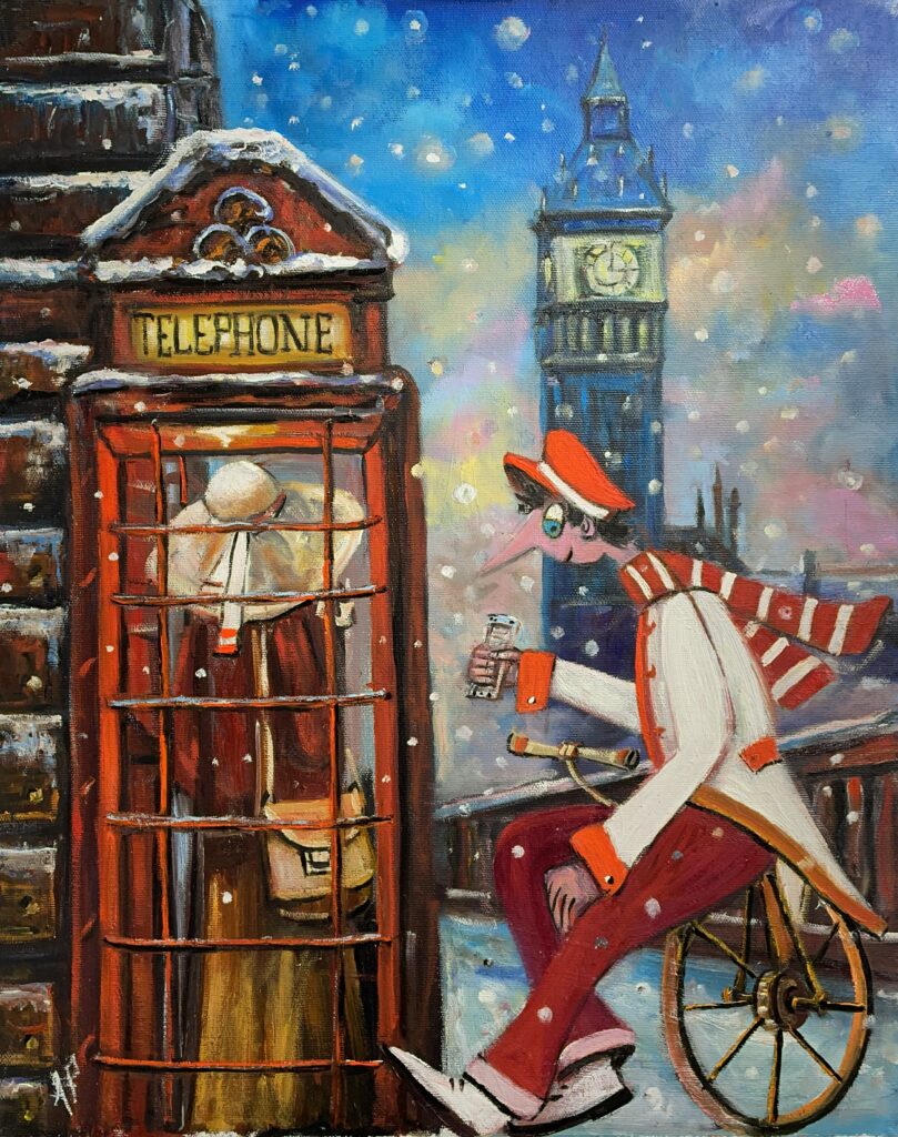Hundreds of paintings and sculptures are in collections all over the world, including USA, New Zealand and even Afghanistan also in all European countries. Currently inspired by ceramic art in a funny way trying to tell about human passions. Behind the fairy-tale decorations are hidden the deepest human passions and desires. Canvas stretched on wooden frame. Colors of the painting may slightly differ from photos due to screen settings.