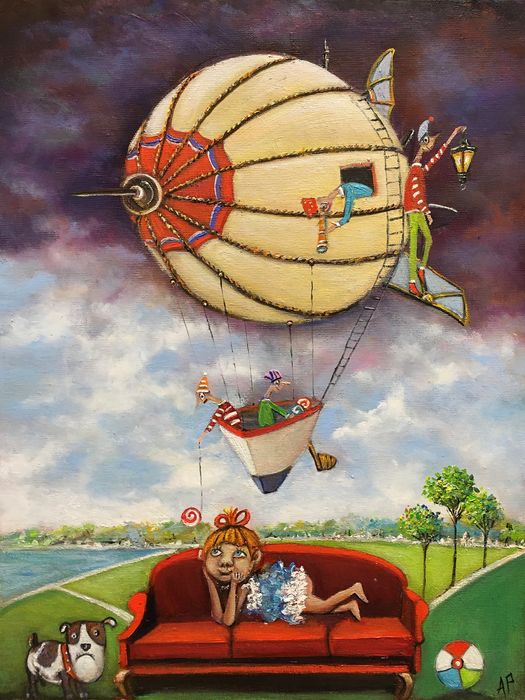 Hundreds of paintings and sculptures are in collections all over the world, including USA, New Zealand and even Afghanistan also in all European countries. Currently inspired by ceramic art in a funny way trying to tell about human passions. Behind the fairy-tale decorations are hidden the deepest human passions and desires. Canvas stretched on wooden frame. Colors of the painting may slightly differ from photos due to screen settings.