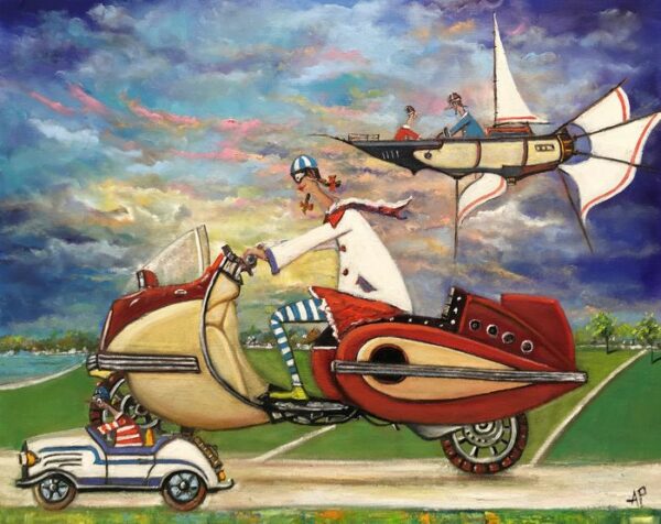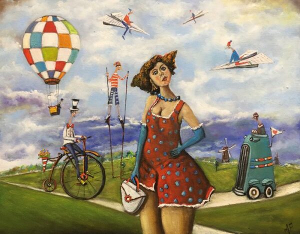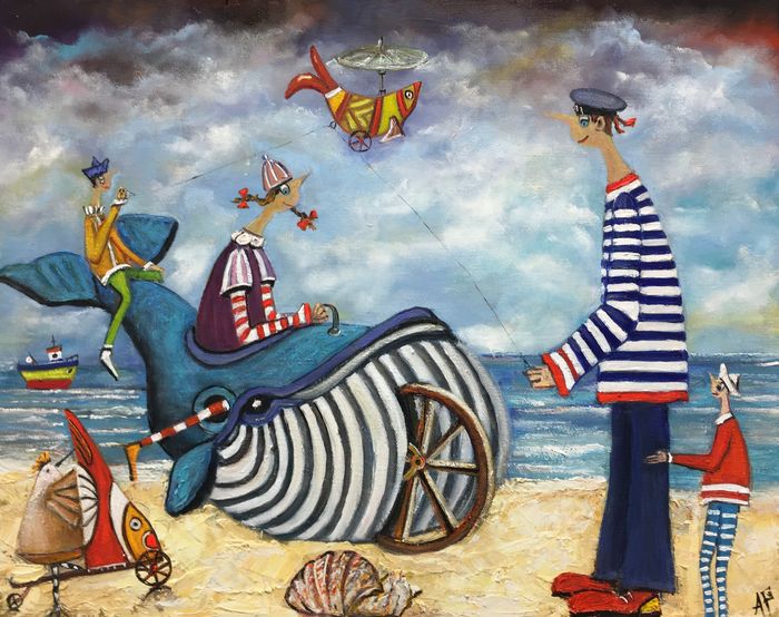 Hundreds of paintings and sculptures are in collections all over the world, including USA, New Zealand and even Afghanistan also in all European countries. Currently inspired by ceramic art in a funny way trying to tell about human passions. Behind the fairy-tale decorations are hidden the deepest human passions and desires. Canvas stretched on wooden frame. Colors of the painting may slightly differ from photos due to screen settings.